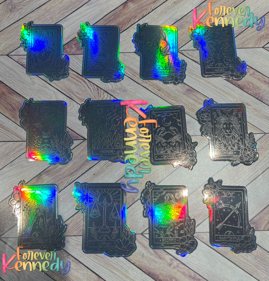 (RTS) HOLOGRAPHIC Vinyl Sticker BUNDLE: Zodiac Tarot - 12 mini stickers